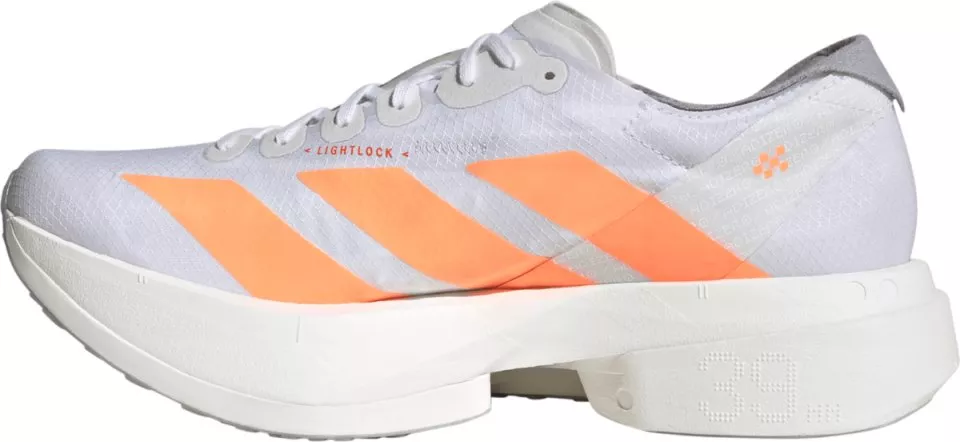 Adios Pro 4 sveria apie 205 g (vyriška versija), todėl yra vieni lengviausių sportinių batelių. 6 mm drop’as užtikrina puikią amortizacijos ir dinamikos pusiausvyrą (39 mm ties kulnu ir 33 mm ties pirštais), o platesnis priekinės kojos padas pagerina saugumą ir kontrolę bėgant.