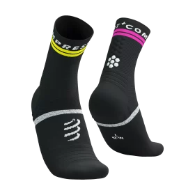 COMPRESSPORT PRO MARATHON V2.0 – bėgimo kojinės.Atnaujintas Pro Marathon modelis, sukurtas siekiant suteikti dar patogesnę bėgimo patirtį. Šių efektyvių bėgimo kojinių audinys sukurtas taip, kad sukeltų mažiau trinties ir perkaitimo, sumažinant įkaitusių padų ir skausmingų pūslių atsiradimo riziką. Be neslystančių 3D.dots, pade taip pat yra nauja neslystanti juosta, specialiai sukurta tam, kad pėda neslidinėtų bate. Arkos atrama suteikia reikiamą suspaudimą, kad paskatintų kraujotaką ir neleistų medžiagai susisukti ir susilankstyti, o sustiprinta Achilo vieta suteikia papildomos atramos. Viršutinė pėdos dalis užtikrina maksimalią ventiliaciją ir drėgmės pašalinimą, kai kyla tempas ir temperatūra. Nesvarbu, ar esate profesionalus sportininkas, ar žmogus, kuris tiesiog mėgsta bėgioti, šios sportinės kojinės yra geriausias atsakymas į degančius padus ir varginančias pūsles.- Aukšto lygio pūslių prevencija dėl antibakterinių PTFE pluoštų, kurie sumažina perkaitimo, sudirginimo ir trinties riziką.