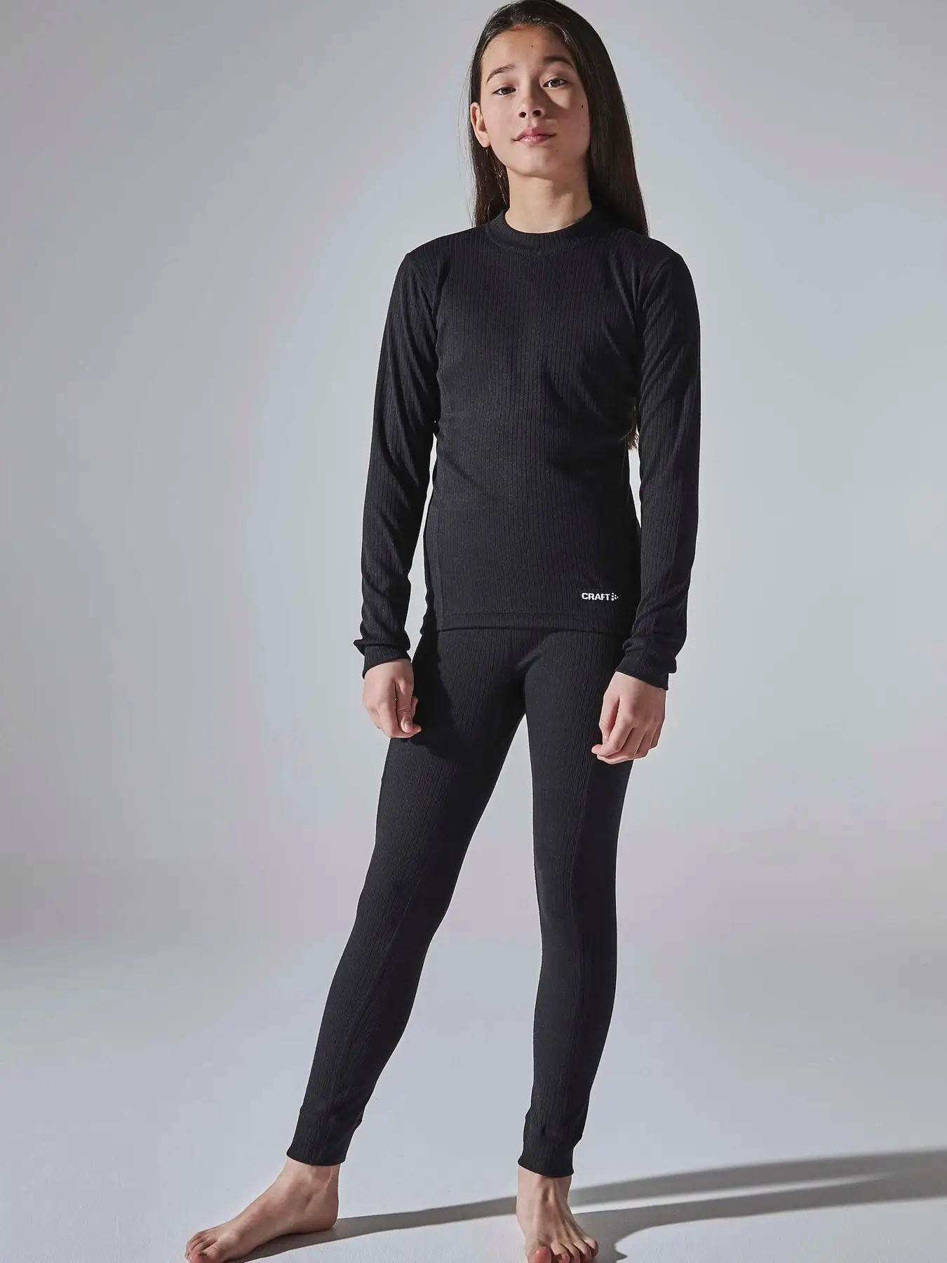 Craft Baselayer Set JR – funkcionalus ir patogus pirmo sluoksnio termo komplektas vaikams (JR/Junior), skirtas žiemos sportui ir aktyviam žaidimui, su ilgarankoviais marškinėliais ir ilgomis kelnėmis iš mezginio audinio, užtikrinančio optimalų drėgmės transportą ir komfortą.