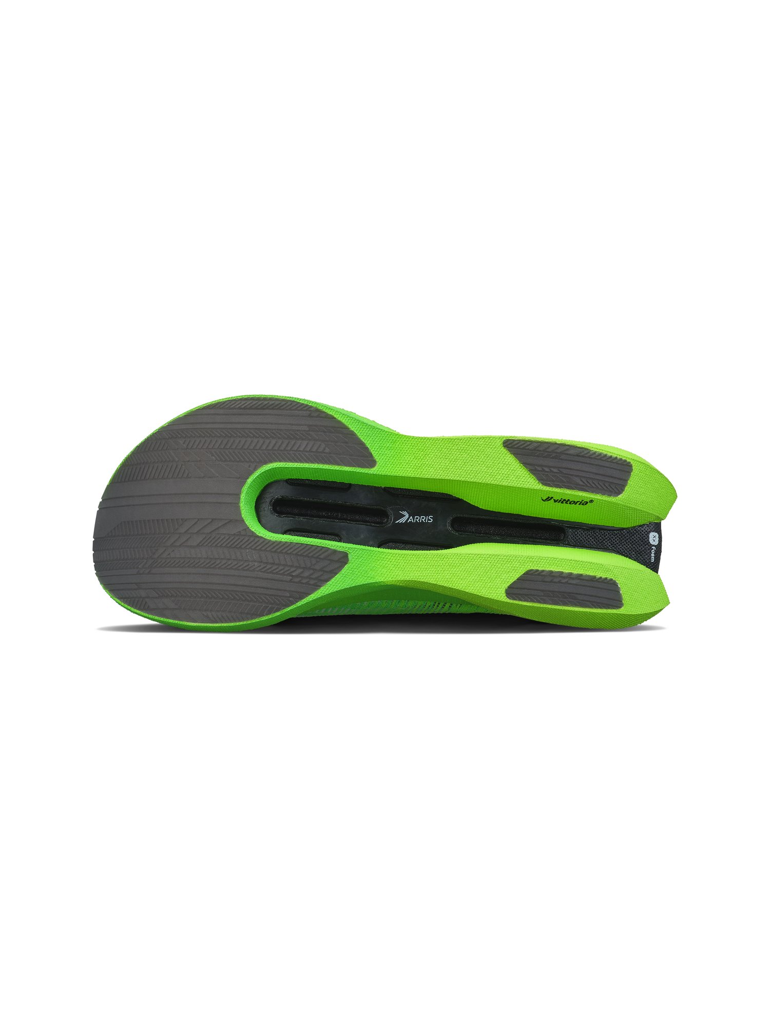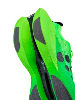 Patobulintas pažangia ARRIS anglies pluošto plokštele, batas pasižymi lengvu tvirtumu ir suderintu standumu, užtikrinančiu stabilumą bėgant dideliu greičiu ir geresnę varomąją jėgą. Išskirtinė bato savybė – unikali padalytos kulno konstrukcijos konstrukcija, leidžianti stabilų energijos perdavimą judesio metu ir maksimalią varomąją jėgą.