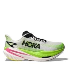 HOKA MACH X 3 yra lengvi ir greiti bėgimo bateliai, skirti tiek kasdienėms treniruotėms, tiek intensyviems tempiniams bėgimams. Jie pasižymi pažangia PEBA ir Pebax plokščių sistema, kuri užtikrina maksimalų energijos grąžinimą ir minkštą nusileidimą. Batų viršus pagamintas iš kvėpuojančio ir elastingo warp knit audinio, kuris prisitaiko prie pėdos formos ir užtikrina komfortą.