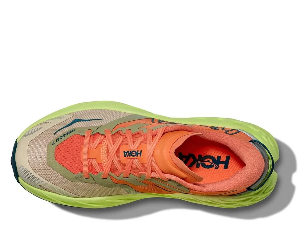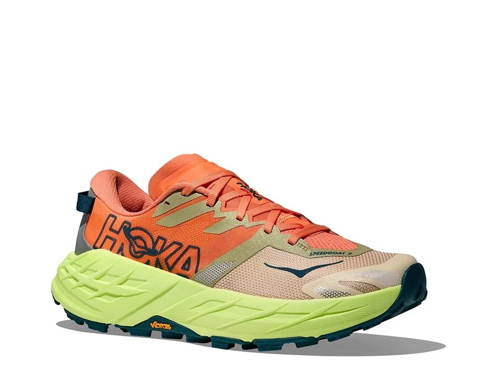 Hoka Speedgoat 7 – legendiniai trail bėgimo batai, atnaujintas modelis su pagerintu sukibimu ir lengvesne amortizacija, idealūs techniškiems kalnų takams ir ultramaratonams.